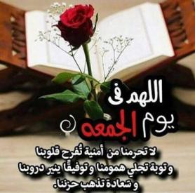 اللهُم في يوم الجُمعه، آجمعنَا في دارٍ لا يتغَير جمالَها ولا يُفنَى نعيمُها ولا يُبلى حُسنها ياربّ أرزقنا جنتُك