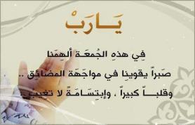 يا رب في يوم الجمعة وعدت عبادك بقبول دعواتهم فيه.. سأدعوا لقلب قريب لقلبي (اللهم أرزقه ما تريد وأرزق قلبه ما يريد وأجعله لك كما تريد.. اللهم قدر له ذلك قبل أن تأذن لشمس الجمعة قبل المغيب).